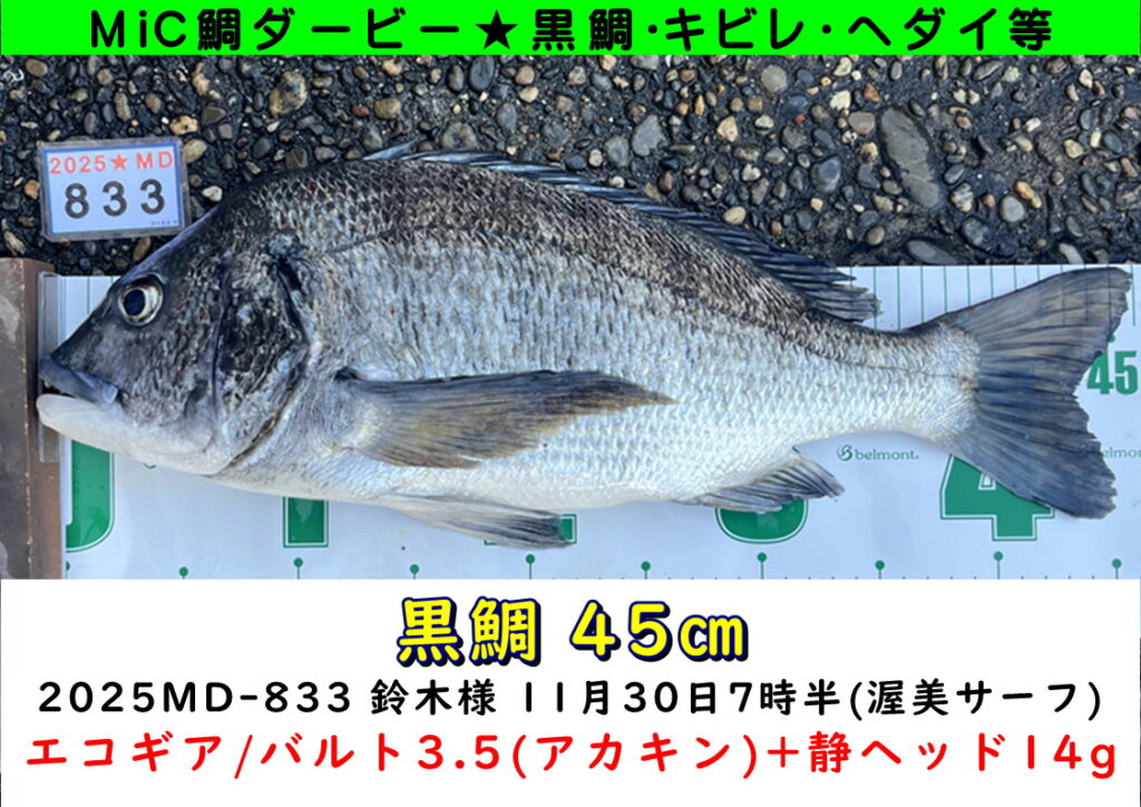 ★次回ダービー開催26年2月28日まで『2025 鯛ダービー3位 51.5㎝』が期間外大物賞の基準となります。